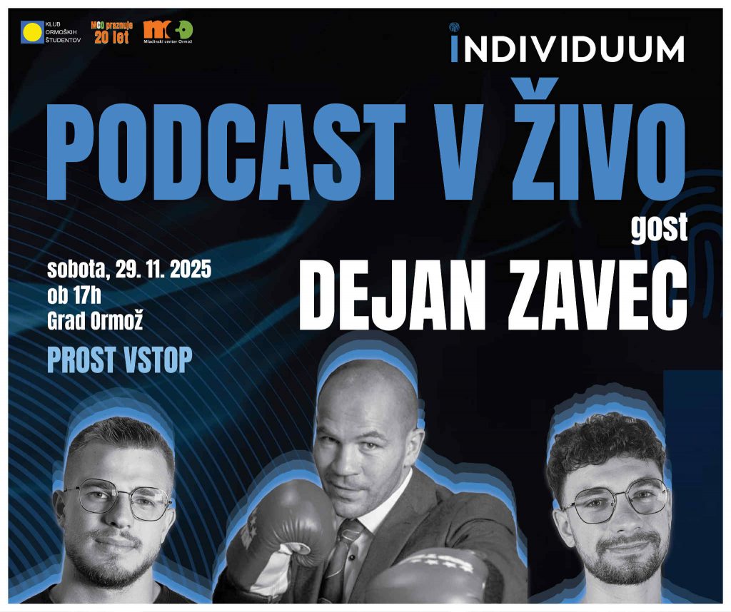 Ob 20. obletnici delovanja Mladinskega centra Ormož bo v soboto, 29. novembra, potekal zanimiv dogodek – podcast v živo. Gost na podcastu bo Dejan Zavec, pogovor pa bosta moderirala, ustanovitelja in voditelja Individuum Podcasta, Lan Kokol in Patrik Majhen.